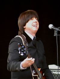 Glenn Henry III as Paul McCartney - Glenn is the leader, founder and creator of Paperback Writer-Born in the Los Angeles area, Glenn grew up in Santa Barbara, California, beginning a musical career at the age of 8. Born the first son of Professional musicians, his father was a big band leader (later became agent) and his mother the vocalist. Glenn has 4 brothers and 1 sister. Glenn was self taught on the guitar at age 8 and began piano lessons at the age of 10. He switched to bass at age 12 and later studied bass while in his 20’s with Los Angeles session great (Guitar Player magazine bass columnist), Herb Mickman. Having played in several top 40 bands Glenn began to network in the Los Angeles area grabbing an occasional jingle session in the early 80’s. His early career culminated with a recording project produced by the late great "Toto" legendary founder drummer Jeff Porcaro in 1980. Glenn recorded 3 tracks with some of the other members of the group "Toto". In 2001 Glenn co-founded The Beach Toys with a drummer friend giving rise to his tribute career. Glenn created the Beatles show to perform with his Beach Boys show in 2003. The group was then called “Rubber Soul” after one of Glenn’s favorite albums. Legalities forced a name change in 2004 so Glenn changed the name to his first ever owned Beatles 45 record, Paperback Writer. Glenn developed both the Beach Boys Show and the Beatles show simultaneously working hard to promote both shows landing cruise line contracts in 2005 as well as developing a contract with Disney Entertainment in 2006 for his Beach Boys show. Not long after that, Paperback Writer became a Disney favorite too. In 2011 he learned to play the bass left handed (after playing right for over 40 years) to perform the role of McCartney both authentically and correctly.